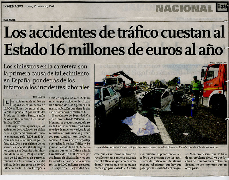 LOS ACCIDENTES DE TRAFICO CUESTAN AL ESTADO 16 MILLONES DE EUROS AL AÑO